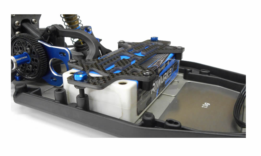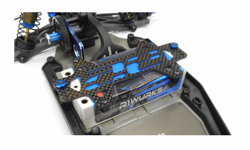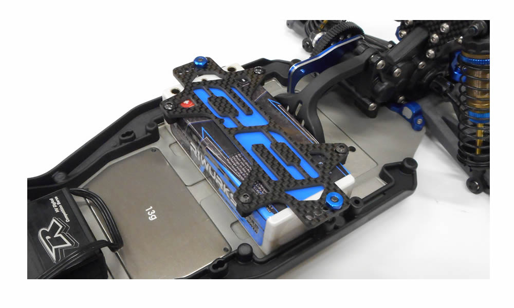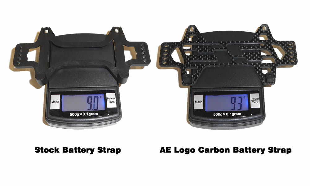 B6 AE logo style carbon fibre battery strap upgrade. Stylish AE logo display will make your buggy stand out from the others. No additional hardware needed, uses stock holding tabs and screws.