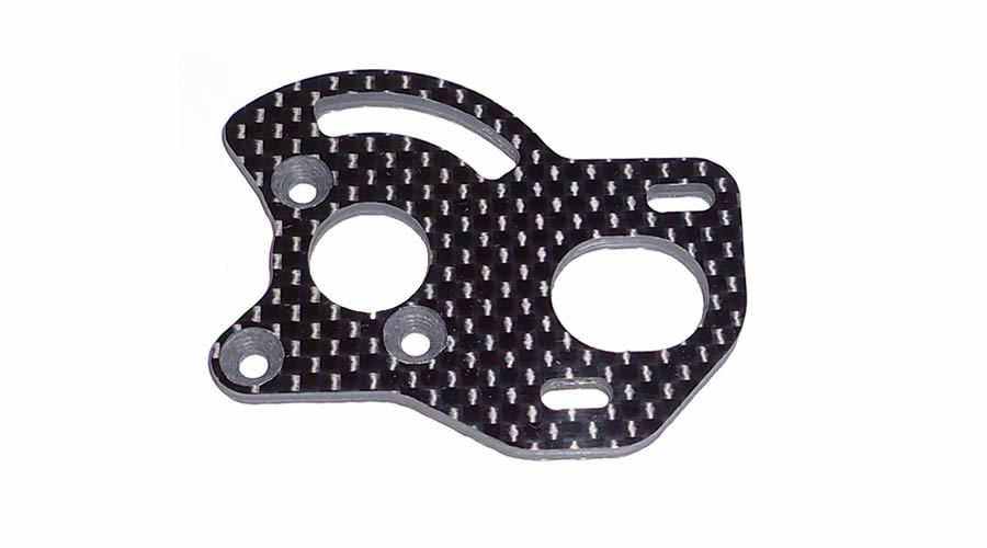 B6 3mm carbon fibre motor plate with spur guard (protects spur from rubbing). Strong and Stylish. Cut from well known Diggity Designs high quality US sourced quasi carbon fibre. Better heat dissipation than aluminum and 4 grams lighter than stock plate.