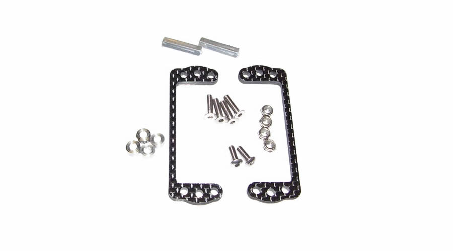 Kyosho RB6/RT6 - 3mm Carbon Fibre Lipo Brace Set - Rear Motor - RB6/RT6 lipo brace set. Can be used with stock battery strap. Includes standoffs and hardware to be used with thumb screws or alike. #RB6-107 $18.00