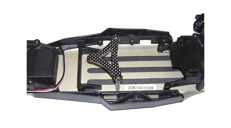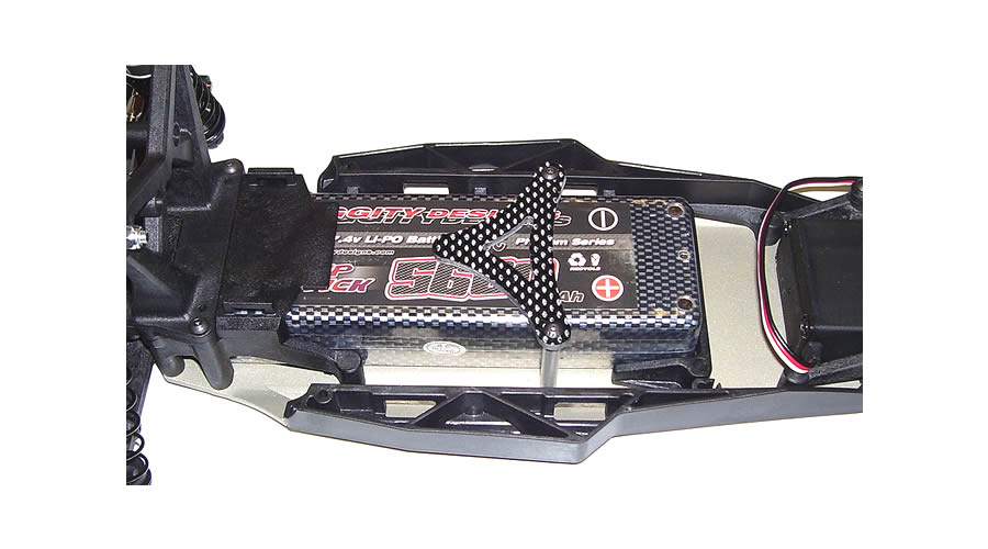 Team Losi TLR 22 - 2.5mm Carbon Fibre Battery Strap V1 - Rigid and functional battery strap for the 22. Includes 4-40 standoffs and hardware. #TLR-100 $18.00